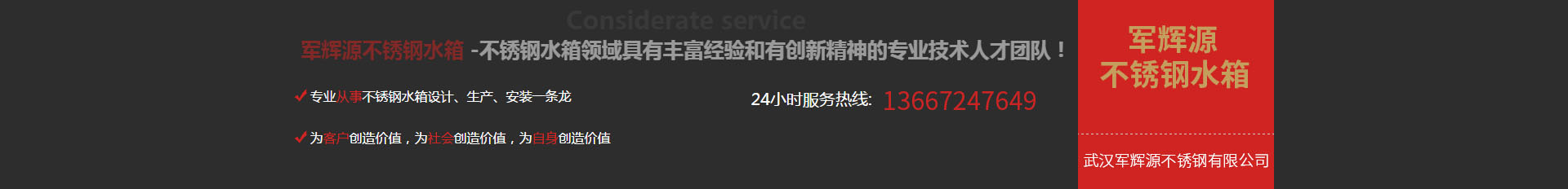 武漢軍輝源不銹鋼有限公司是華中地區(qū)專業(yè)生產(chǎn)不銹鋼水箱的環(huán)保企業(yè),公司集不銹鋼水箱開發(fā)設(shè)計(jì)、生產(chǎn)、銷售、維修、售后服務(wù)為一體。